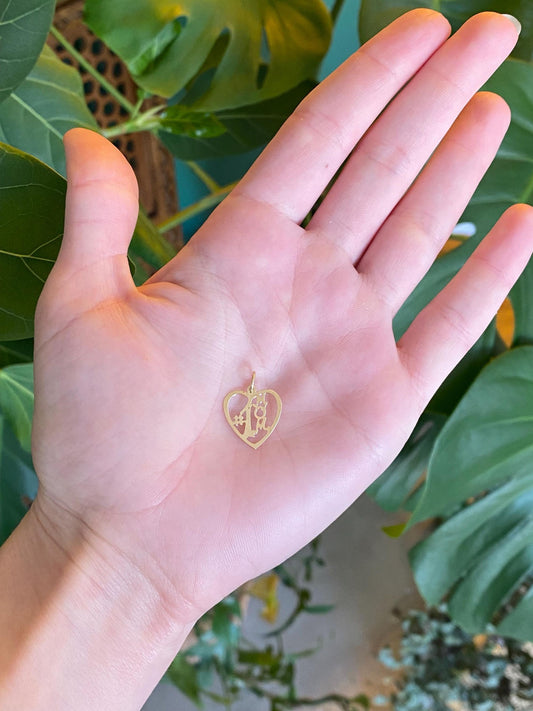 Vintage Solid 14k Yellow Gold #1 Mom Heart Charm