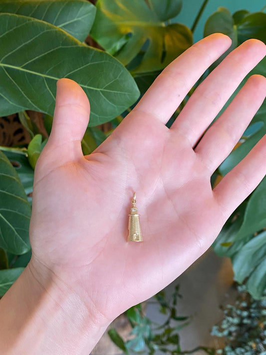 Vintage Solid 14k Yellow Gold Diamond Lighthouse Charm