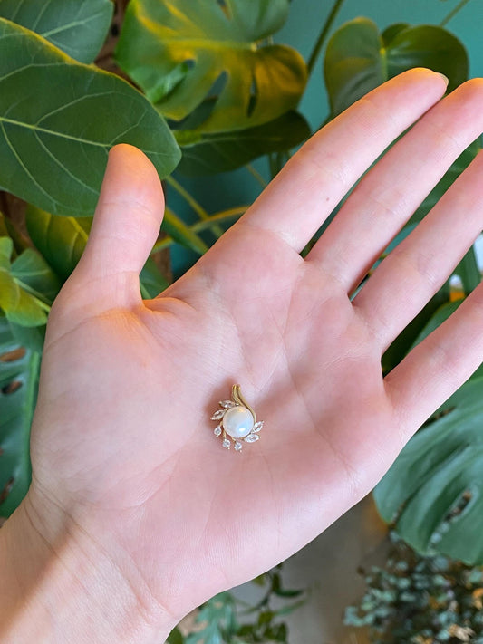 Vintage Solid 10k Yellow Gold Clear Spinel Pearl Charm