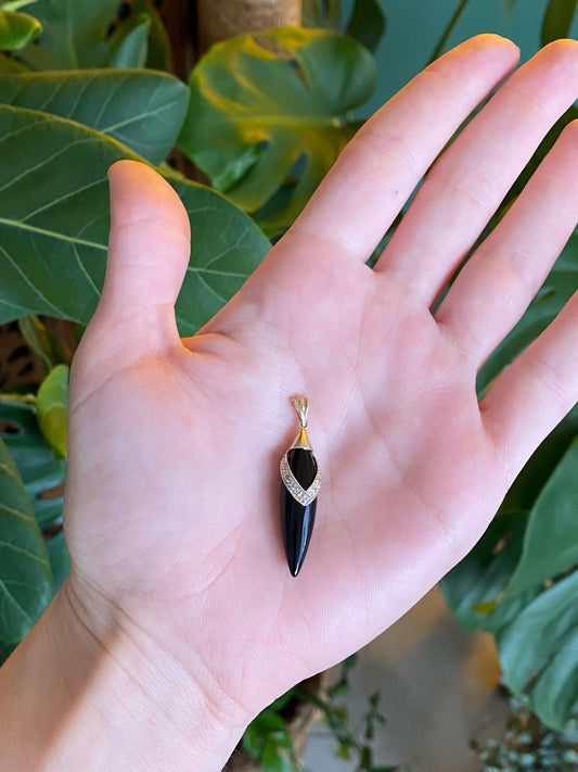 Vintage Solid 10k Yellow Gold Diamond Onyx Bullet Charm