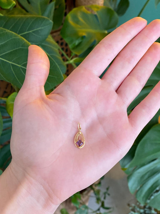 Vintage Solid 10k Yellow Gold Amethyst Heart Charm