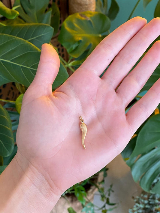Vintage 18k Yellow Gold Textured Italian Horn Charm