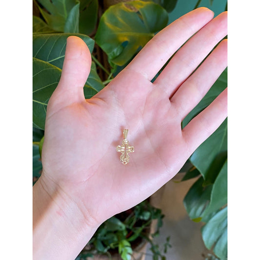 Vintage Solid 14k Yellow Gold Diamond Cut Open Work Cross Charm