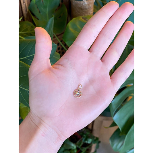 Solid 14k Yellow Gold Clear Quartz Opal Charm