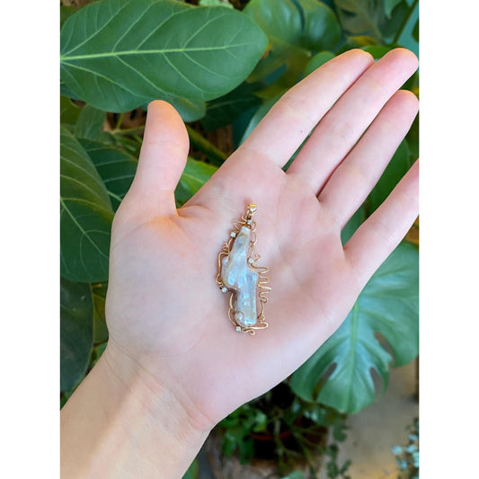 Vintage Solid 14k Yellow Gold Diamond Freeform Pearl Wire Work Charm
