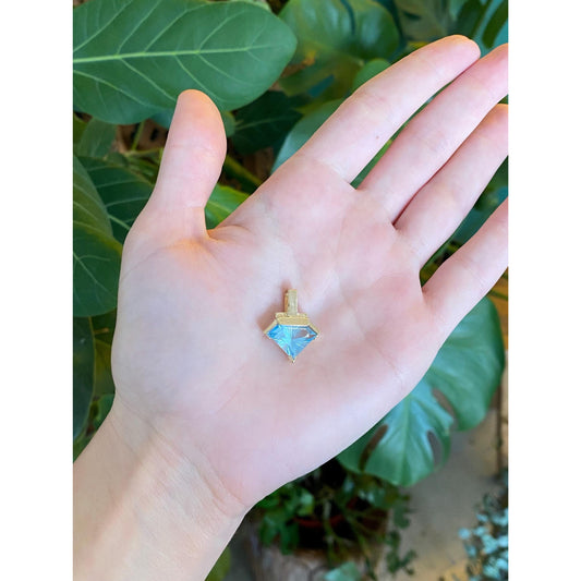 Vintage Solid 14k Yellow Gold Turquoise Enamel Butterfly Charm