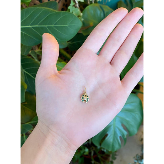 Vintage Solid 14k Yellow Gold Emerald Ladybug Charm