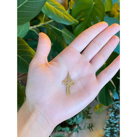 Vintage Solid 9k Yellow Gold Celtic Cross Charm
