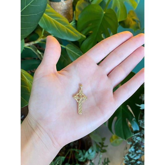 Vintage Solid 9k Yellow Gold Engraved Celtic Cross Charm