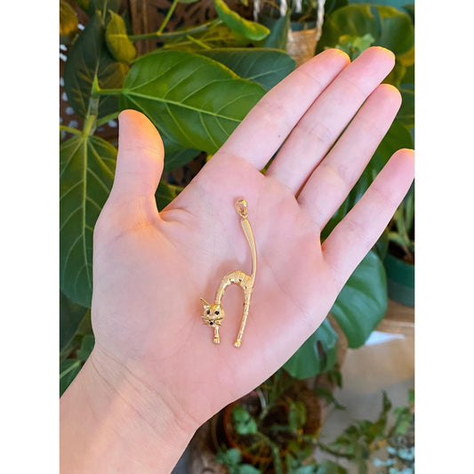 Vintage 18k Yellow Gold Colored Cubic Zirconia Cat Charm