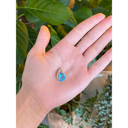 Vintage Solid 10k Yellow Gold Blue Cubic Zirconia Charm