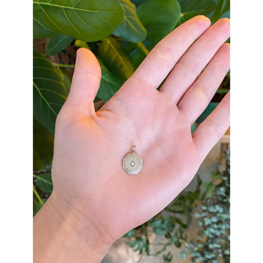 Vintage Solid 14k White & Yellow Gold Diamond Mother of Pearl Cufflink Conversion Charm