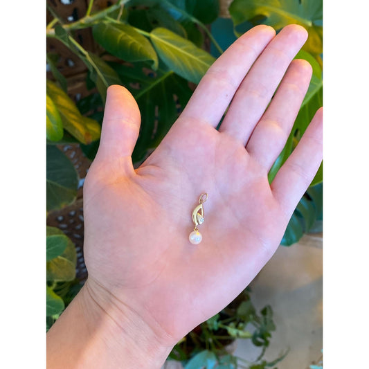 Vintage Solid 14k Yellow Gold Diamond Pearl Dangle Charm