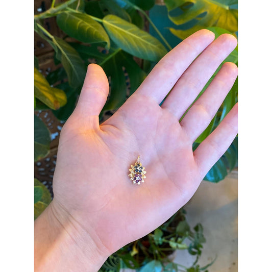 Vintage Solid 14k Yellow Gold Colored Spinel Flowers Charm