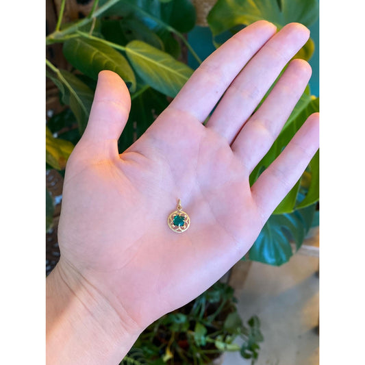 Vintage Solid 14k Yellow Gold Green Chalcedony Carved Scarab Charm