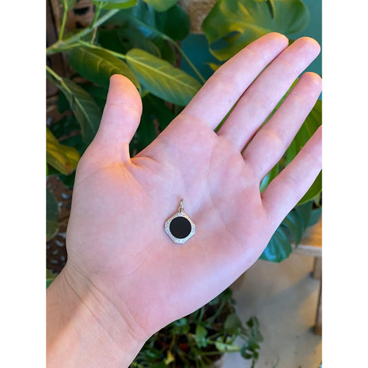 Vintage Solid 14k White Gold Diamond Onyx Cufflink Conversion Charm
