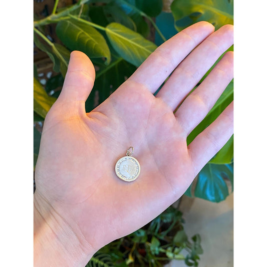 Vintage Solid 14k White Gold Diamond Halo Monogram Cufflink Conversion Charm