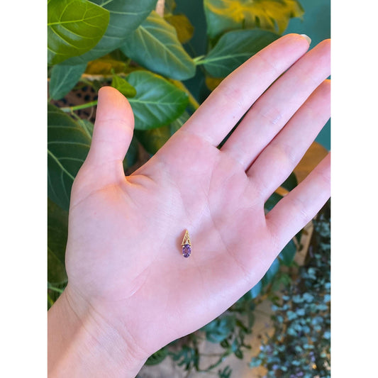 Vintage Solid 14k Yellow Gold Diamond Amethyst Charm