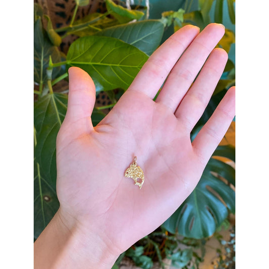 Vintage Solid 14k Yellow Gold Diamond Cut Fish Charm