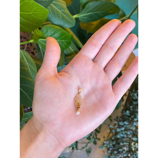 Vintage Solid 10k Yellow Gold Orange Cubic Zirconia Pearl Dangle Charm