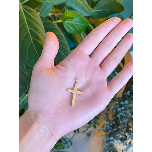 Vintage 9k Yellow Gold Floral Lined Cross Charm