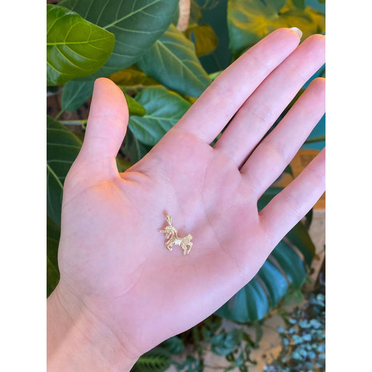 Vintage Solid 14k Yellow Gold Diamond Cut Unicorn Charm