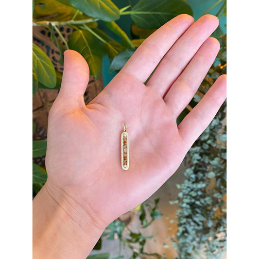 Vintage Solid 14k Yellow Gold Clear Sapphire Seed Pearls Enamel Bar Charm
