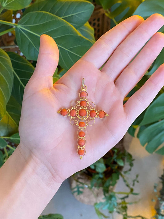 Vintage Solid 14k Yellow Gold Coral Cross Fidget Charm