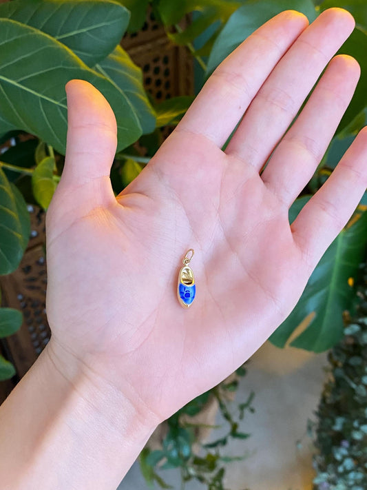 Vintage Solid 14k Yellow Gold Blue & White Enamel Dutch Shoe Charm