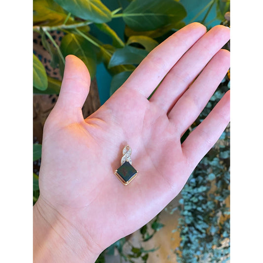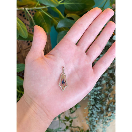 Vintage Solid 14k Yellow Gold Blue Cubic Zirconia Leaves Charm