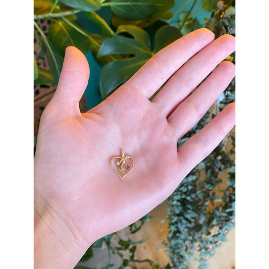 Solid 14k Yellow Gold Peridot Clear & Pink Sapphire Heart Charm