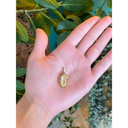 Vintage Solid 14k Yellow Gold Light Green Spinel Charm