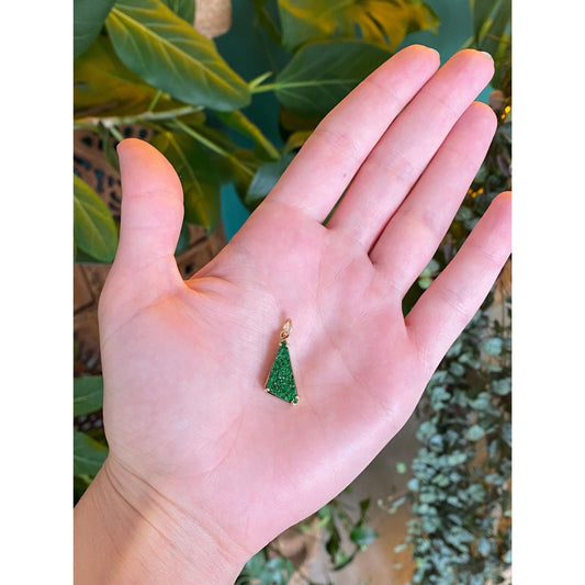 Vintage Solid 14k Yellow Gold Green Druzy Charm