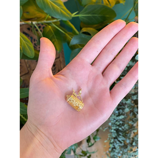 Vintage Solid 14k Yellow Gold Floral Designed Beer Stein Charm