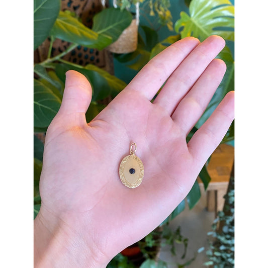 Vintage Solid 10k Yellow Gold Blue Spinel Engraved Cufflink Conversion Charm