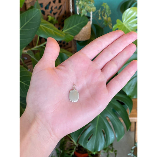 Vintage Solid 14k White Gold Engraved Border Cufflink Conversion Charm