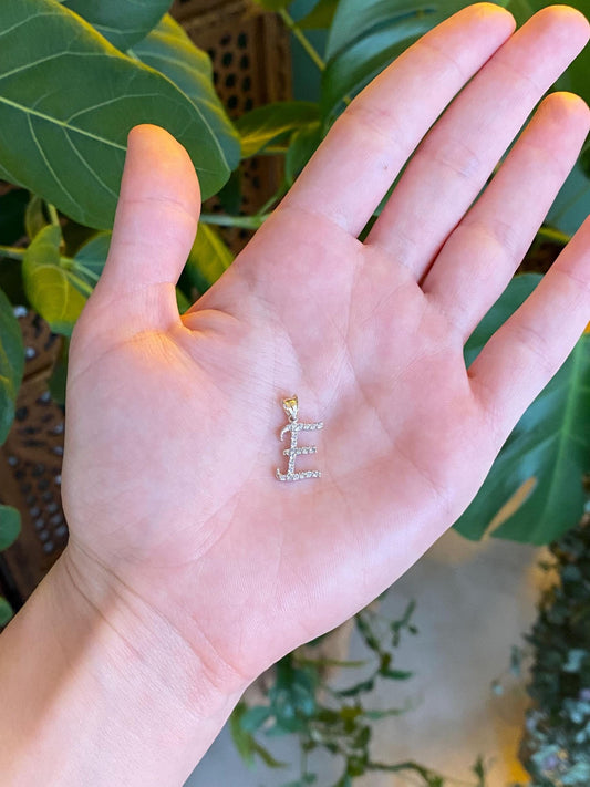 Vintage Solid 14k White Gold Cubic Zirconia Initial 'E' Charm