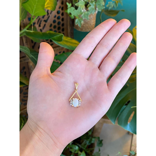 Solid 14k Yellow Gold Diamond & Opal Charm