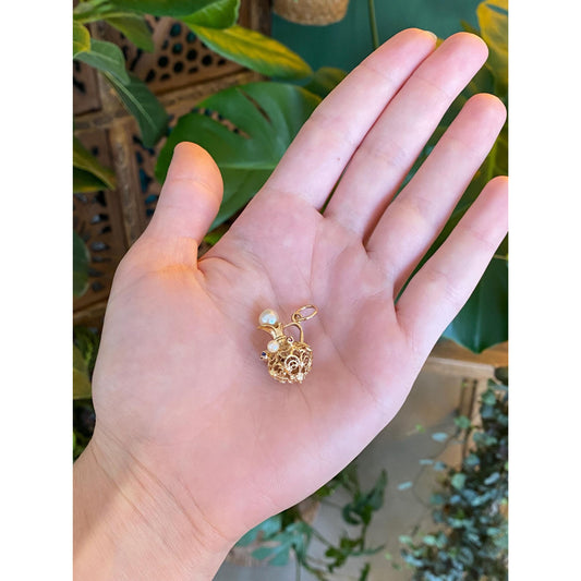 Vintage Solid 14k Yellow Gold Pearl & Sapphire Pitcher Charm