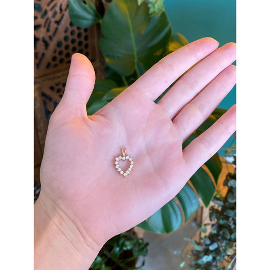 Vintage 14k Yellow Gold Cubic Zirconia Heart Charm