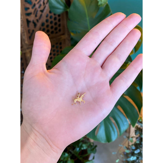 Vintage Solid 14k Yellow Gold Unicorn Charm