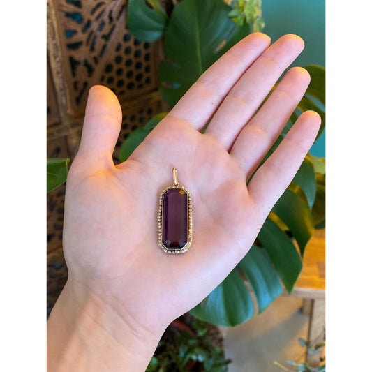 Vintage Solid 18k Yellow Gold Purple Cubic Zirconia Seed Pearl Halo Charm