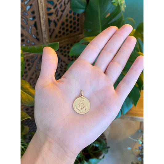 Vintage Solid 10k Yellow Gold Engine Turned Freemason Charm