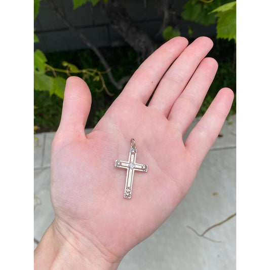 Vintage Solid 14k White Gold Diamond Cross Charm