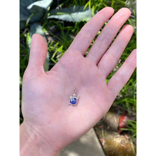 Vintage Solid 18k White Gold DeMolay Enamel Seed Pearls Shield Sword Charm