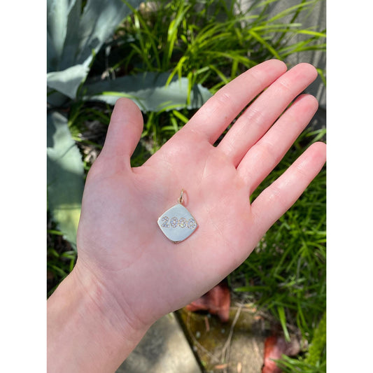 Vintage Solid 14k Yellow Gold Diamond '2000' Charm