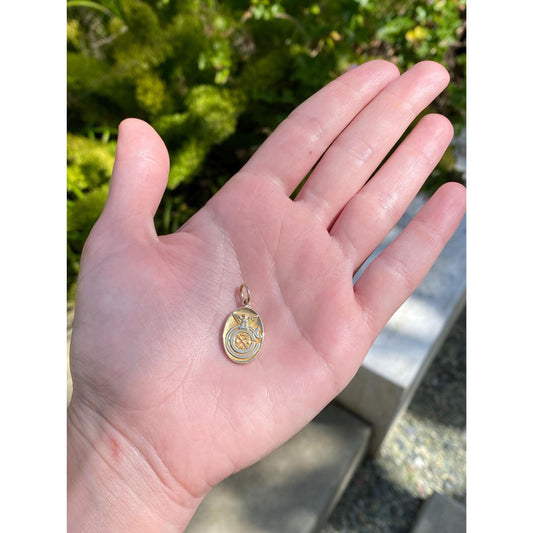 Vintage Solid 14k Yellow Gold Diamond Cut Owl Charm