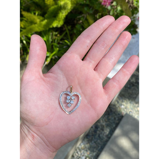Solid 14k White & Yellow Gold Diamond Cluster Heart Charm