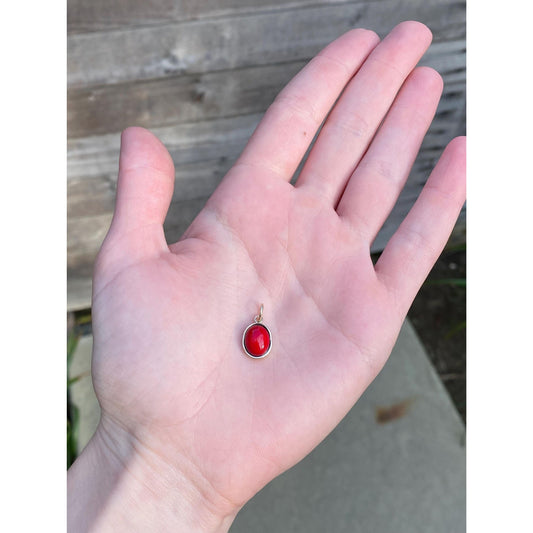 Vintage Solid 14k Yellow Gold Red Stone Charm