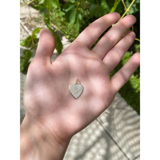 Vintage Solid 14k Yellow Gold Star Set Diamond Heart Charm